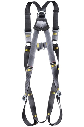 This two point safety harness has both a rear and chest mounted front attachment points. The two attachment points extend this harness?s working capability, meaning it can be used vertical fall protection and restraint situations in either vertical or horiztonal planes. The ring connection between the chest and shoulder straps ensures no stress loading when force is applied to the front D ring. The addition of a flexible rear D pad provides additional comfort. The inclusion of easy slide shoulder buckles increases the range of adjustment. The way the harness has been designed minimises the amount of rigid webbing edges